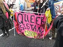 Hoy en día, el término ha adquirido un contenido fuertemente político y está vinculado en general a la disidencia sexual, especialmente desde los años noventa, cuando hubo una fuerte articulación, sobre todo en los países del norte, entre las luchas por las demandas por el reconocimiento de la identidad de género y la orientación sexual, y la respuesta de los Estados a la problemática relacionada con el VIH/sida. En 1990, el punto más alto en el reclamo por inversiones en políticas públicas de salud e investigación sobre el sida, se postuló la idea de una Nación Queer en el marco de la organización activista sobre el sida Act Up. Así, en el activismo por el HIV y sida, las políticas queer se dedicaron a combatir las instituciones productoras de estigmas como los medios y la educación, pero también la medicina y las políticas de salud que tienen a su cargo el control institucional de categorías sexuales. Además, «queer» es utilizado por muchas personas que no sienten una coherencia entre su sexo y el género que asumen socialmente y tampoco se identifican con un determinado género, ni se orientan sexualmente de forma continua, sostenida o exclusiva, hacia un género socialmente considerado «opuesto».[7]