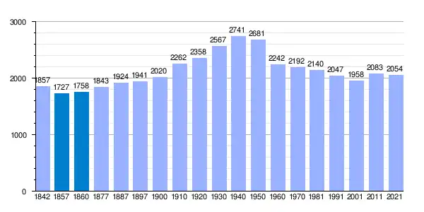 | Gráfica de evolución demográfica de Quel[8] entre 1842 y 2021 |