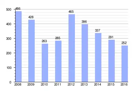 | Gráfica de evolución de la deuda viva del ayuntamiento entre 2008 y 2016 |