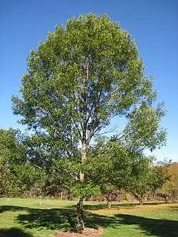 Es un árbol de tamaño mediano, caducifolio, que puede llegar a los 25-30 m de altura con un tronco de hasta 1,5 m de diámetro. La corteza es de color gris oscuro y profundamente surcado. Las hojas son de 8-20 cm de largo y 3-6 cm de ancho, con 14-20 pequeños dientes de sierra como lóbulos triangulares a cada lado, con los dientes de forma muy regular.[1]