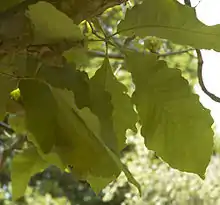 Quercus aliena, conocido como roble de hoja grande[1] o roble blanco oriental,[2] es un árbol caducifolio perteneciente a la familia de las fagáceas. Por lo general mide entre 10 y 15 m de altura, con ejemplares excepcionales que llegan a medir hasta 20 m. Está clasificada en la Sección Quercus, que son los robles blancos de Europa, Asia y América del Norte. Tienen los estilos cortos; las bellotas maduran en 6 meses y tienen un sabor dulce y ligeramente amargo, el interior de la bellota tiene pelo. Las hojas carecen de una mayoría de cerdas en sus lóbulos, que suelen ser redondeados.