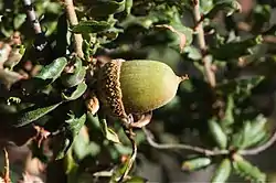 Quercus dumosa es una especie de roble de la familia Fagaceae.[2] Está clasificada en la sección Quercus, que son los robles blancos de Europa, Asia y América del Norte. Tienen los estilos cortos; las bellotas maduran en 6 meses y tienen un sabor dulce y ligeramente amargo, el interior de la bellota tiene pelo. Las hojas carecen de una mayoría de cerdas en sus lóbulos, que suelen ser redondeados.