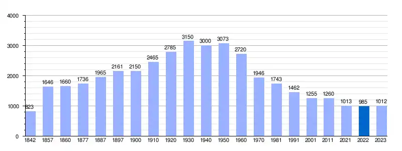 Población de derecho (1842-1991, excepto 1857 y 1860 que es población de hecho) o población residente (2001-2021) según los Censos de Población desde 1842. Población según el padrón municipal 2022/2023 del INE. |