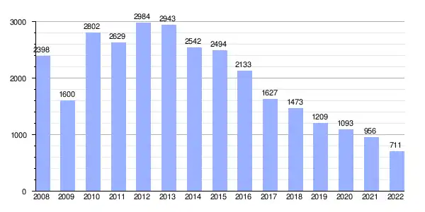 | Gráfica de evolución de la deuda viva del Ayuntamiento de Quesada entre 2008 y 2022 |