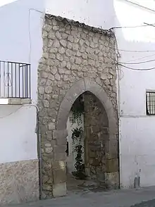 - En la parte interior presenta un arco de medio punto de ladrillo, con bóveda de medio cañón. La leyenda cuenta que la reina Isabel la Católica pernoctó, en 1489, en la calle a la que se accede por esta puerta. Además de este arco, se conservan restos de murallas árabes y cristianas (siglos XI al XIV) en el casco antiguo del pueblo.[12]
