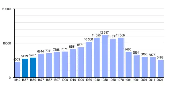 | Gráfica de evolución demográfica de Quesada[9] entre 1842 y 2021 |