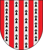 Una descripción equivalente que data de 1588, reza: veynte y quatro Armiños negros en quatro Baſtones de plata en campo roxo.[8]