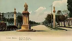 La construcción de este paseo terminó en 1836. Se extendía desde las faldas de La Loma del Príncipe o de Aróstegui, hasta la calle Soledad, y contaba con numerosas fuentes y estatuas que entonces adornaban su calle central. La primera fuente se alzaba entre el Jardín del Obispo y la calle Soledad, y se denominaba de Ceres; las otras recibían el nombre de las Frutas, al empezar la Quinta de los Molinos; la de los Sátiros, frente a la mitad la misma; y al final del Paseo, la llamada de Esculapio.