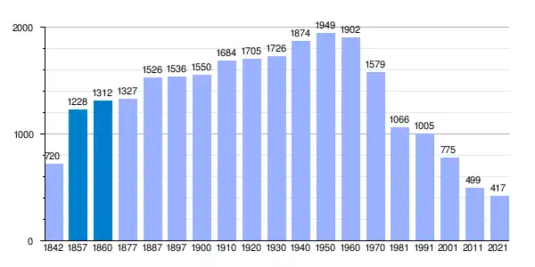 | Gráfica de evolución demográfica de Quintana y Congosto[5] entre 1842 y 2021 |