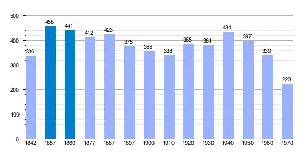 | Gráfica de evolución demográfica de Quintanadueñas[1] entre 1842 y 1970 |