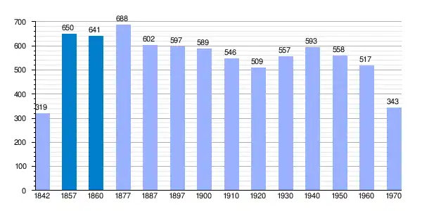 | Gráfica de evolución demográfica de Quintanaloranco[2] entre 1842 y 1970 |