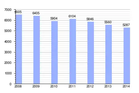 | Gráfica de evolución de la deuda viva del ayuntamiento entre 2008 y 2014 |