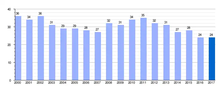 | Gráfica de evolución demográfica de Quintanilla-Sotoscueva entre 2000 y 2017 |