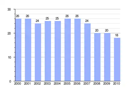 Población de derecho (2000-2010) según los censos de población del INE a 1 de enero de cada año.[3] |