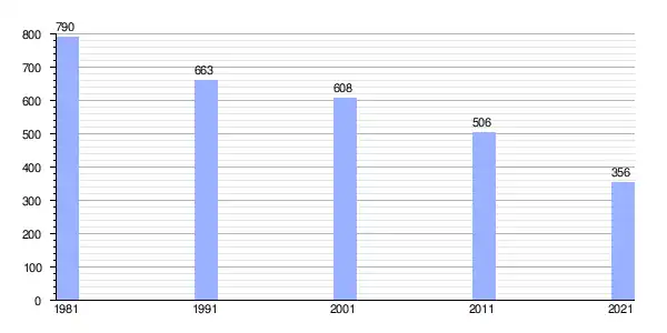 | Gráfica de evolución demográfica de Quintanilla del Agua y Tordueles[1] entre 1981 y 2021 |