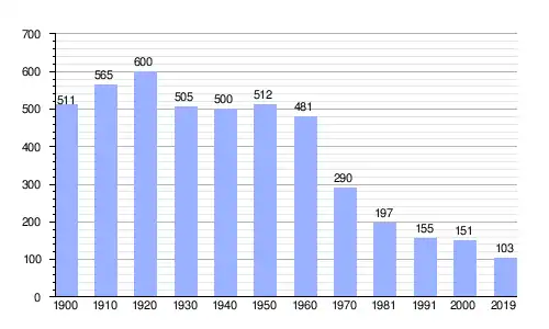 | Gráfica de evolución demográfica de Quintanilla del Monte entre 1900 y 2019 |