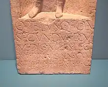 Traducción: Quinto Petilio Secundo, hijo de Quinto, de la tribu Oufentina, natural de Milán, soldado de la legión XV Primigenia, de 25 años, con 5 años de servicio. Su heredero por testamento cuidó de hacerlo