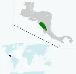 Se limita al oeste de Nicaragua y el norte de Costa Rica. Se encuentra principalmente en las inmediaciones del lago de Nicaragua y el lago de Managua, pero su gama se ha ampliado un poco gracias a la tala de los bosques y la creación de áreas de pasturas. En Costa Rica se distribuye en el área de Caño Negro a lo largo del río Frío. Se trata de especies no migratorias, pero hace algunos movimientos locales en respuesta a las estaciones y los cambios en el nivel del agua.