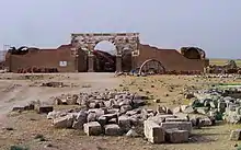 La sección central, a la que parecen faltarle las dos secciones laterales destinadas a sirvientes y cortesanos, está dividida en tres partes. La puerta principal y la mezquita están situadas en el lado que mira a La Meca, el sur; luego hay un patio, y en el lado norte se halla la zona residencial, con una entrada de tres arcadas que lleva al salón abovedado del trono, de planta basilical y rematado por un triconque, un espacio de planta trebolada con tres lóbulos, característico de las salas de ceremonia de los palacios de Bizancio. Rodeando este salón hay un grupo de habitaciones cubiertas con bóvedas arqueadas y conductos de ventilación.