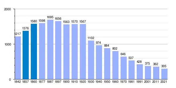 | Gráfica de evolución demográfica de Rágol[2] entre 1842 y 2021 |