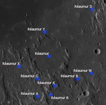 Por convención estos elementos son identificados en los mapas lunares poniendo la letra en el lado del punto medio del cráter que está más cercano a Réaumur.