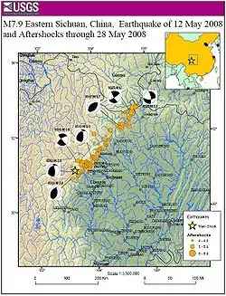 El patrón réplicas permite corroborar el tamaño del área que se desplazó durante el sismo principal. En los casos del terremoto del Océano Índico de 2004 y del terremoto de Sichuan de 2008, la distribución de las réplica muestra en ambos casos que el epicentro (el lugar donde se inició la ruptura) se encuentra a un extremo del área de deslizamiento, lo que implica que hubo una propagación muy asimétrica de la ruptura.