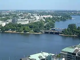 Se compone de dos lagos: el lago exterior conocido como Außenalster y el lago interior denominado Binnenalster. Ambos lagos están separados por el puente Lombardsbrücke y el Kenedybrücke.