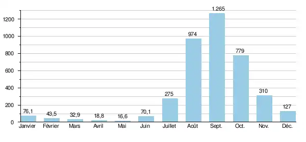 (en m³/s, para una cuenca vertiente de 30 235 km² (90% de la cuenca). Datos calculados para el período 1951-90)[1]