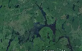 ![]() Vista satelital del embalse Pipmuacan (curso medio del Betsiamites) | ||