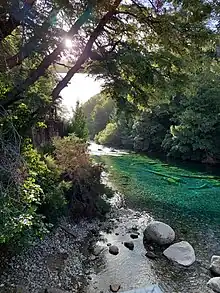 Sobre el río, se encuentran dos puentes, uno peatonal, muy frecuentado por turistas, y otro de mucho mayor tamaño, sobre el que circula la ruta nacional 40.