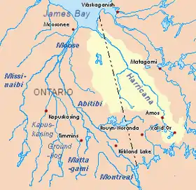 - «Rivière Harricana» (en francés). Commission de toponymie du Québec. Archivado desde el original el 3 de marzo de 2016. Consultado el 18 de noviembre de 2008.