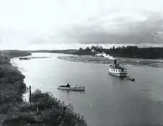 Antiguamente el río se usaba para el transporte flotante de madera y también fue utilizado para transportar recursos hasta Val-d'Or (madera, dinamita, mano de obra), una región donde comenzaron a abrirse varias explotaciones mineras. Hubo un tiempo en que el río estaba lleno de barcos, un verdadero pequeño puerto en el bosque boreal. Muchos de estos barcos fueron hundidos en el fondo del río cuando ya no se necesitaban.[cita requerida] Este es el caso del S.S. Sullivan en 1927, que con un total de 165 cajas de dinamita, todavía se encuentra bajo el puente de hierro con otras chatarras.
