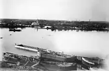 ![]() Vista del Monasterio Spaso-Preobrazhenski (del Salvador) en Yaroslavl desde la otra orilla del Kótorosl. | ||