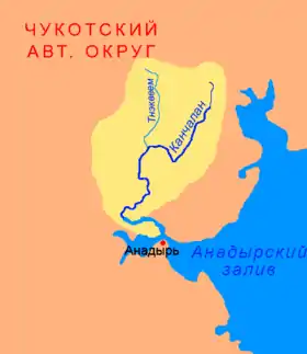 ![]() Vista de satélite del estuario del Anádyr, donde desagua el Kanchalán | ||