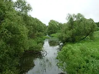Tiene una longitud de 49 km, regando una cuenca de 421 km². Nace cerca de la localidad de Shiriáyevo, en el rayón de Sychovka, cerca de la fuente del río Dniéper. Discurre hacia el este y luego hacia el nordeste. Desemboca en el río Vazuza, juntamente con el río Yáblonia, 6 km por debajo de Sychovka. Este último es su principal afluente, juntamente con el Málaya Yáblonia.