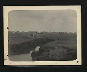 ![]() Foto antigua del campamento en Mafeking Burgher. Las zanjas desaguan en el Molopo. | ||