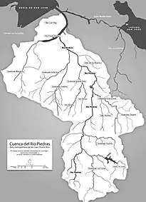 El río Piedras da nombre a la zona que atraviesa, la región y la cuenca hidrográfica del río Piedras en gran parte marcan el límite del territorio.[1][2]