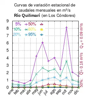 Curvas de variación estacional del río Quilimarí en Los Cóndores.