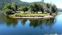 El primer tramo del trayecto del río recorre bosques en que predominan las araucarias. Al avanzar hacia el este, ingresa en la estepa patagónica, aunque se presentan bosquecillos de araucarias aislados hasta cerca de la desembocadura del mismo.