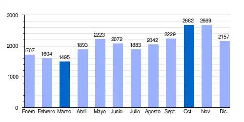 | Caudal medio mensual del San Juan en la estación hidrométrica de Peñitas (Datos calculados en 25 años, 1965-90, en m³/s) |