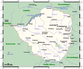 Localización en la cuenca del río Limpopo. El río no aparece grafiado, aunque puede seguirse ya que en ese tramo es la frontera entre Zimbabue y Botsuana
