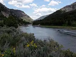 Luego el río sigue hacia el sur, atravesando el Jackson Hole y bordeando la cordillera Teton por su vertiente occidental. En Moran Junction recibe al ramal Buffalo Fork. Tras pasar por la pequeña localidad de Moose y abandona el parque nacional. Sigue luego cerca de Teton Village (310 hab.), Wilson (1482 hab.) y Jackson (9577 hab.), la localidad más importante en el Jackson Hole. Sigue hacia el sur, recibiendo por la izquierda al río Hoback, poco antes de llegar a la pequeña localidad homónima de Hoback (1176 hab.).