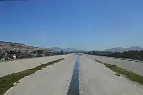 La segunda etapa, de 4 km, comprende desde el puente del ferrocarril, hasta la Carretera Federal 2, cercana de la confluencia con el arroyo Alamar, rodeado de varias zonas habitacionales e industriales cercanos a la via del ferrocarril; la tercera y más reciente en terminación de construcción, parte desde la confluencia hasta la presa Abelardo L. Rodríguez, desarrollándose en sus alrededores del cauce otras zonas habitaciones, comerciales e industriales y un parque público planificado como parque principal de la ciudad, las barreras de concreto terminan cerca de la planta de tratamiento de aguas, dejando un tramo de 2.5 km por un cañón rocoso sin alteración humana hasta la presa Abelardo L. Rodríguez.