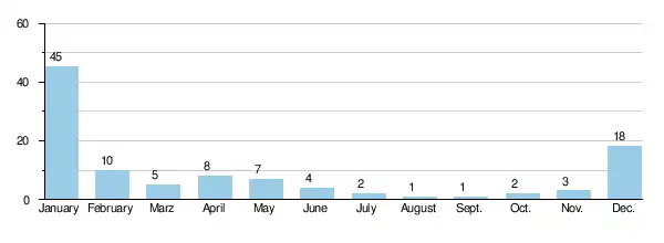 El caudal mensual promedio de la estación hidrológica del río Umba de Mbuta (en m³/s) (calculado utilizando los datos para un período de 30 años, 1954-1984)[2]