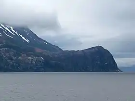 ![]() El cabo Froward, en la foto, esta a solo 7 kilómetros de la desembocadura del río y es el punto más austral del continente americano. | ||