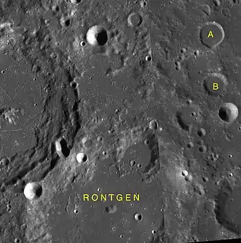 Por convención estos elementos son identificados en los mapas lunares poniendo la letra en el lado del punto medio del cráter que está más cercano a Röntgen.