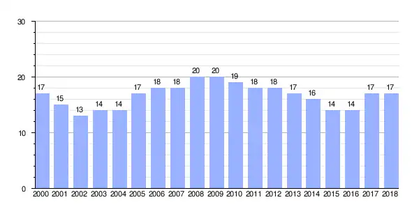 | Gráfica de evolución demográfica de Rúa entre 2000 y 2018 |