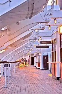 Las áreas públicas de menor tamaño en primera clase, como la sala de lectura, la biblioteca y el estudio musical, serían despojados de la mayor parte de su decoración y remodeladas para uso comercial, lo que permitiría expandir los espacios comunes del barco. Se instalaron dos tiendas más en la cubierta de paseo, en espacios independientes previamente dedicados a camarotes de primera clase y alojamientos de la tripulación.