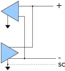 Se debe tener cuidado de que una conexión SC, especialmente en tramos largos de cable, no dé como resultado una conexión de diferentes tierras entre sí; es aconsejable agregar alguna limitación de corriente a la conexión SC. Las conexiones a tierra entre edificios pueden variar en una pequeña diferencia de voltaje, pero con una impedancia muy baja y, por lo tanto, la posibilidad de corrientes catastróficas, lo suficiente como para derretir los cables de señal, las trazas de PCB y dispositivos emisores.