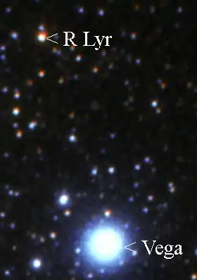 ![]() Posición de R Lyrae en relación con Vega. | ||